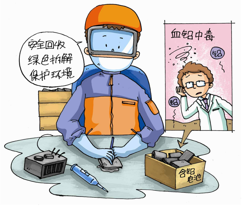 铅蓄电池的污染物主要为生产环节和回收加工过程中产生的含铅废电解液、冶炼废渣、含铅烟尘等,如处置和防护不当,会对工作人员产生很大危害。废铅蓄电池拆解时产生的废电解液中含有硫酸、硫酸铅等,采用落后方法回收铅蓄电池,会导致废液随意进入环境,冶炼加工过程会产生大量的含铅烟尘或重金属废水,造成严重的环境污染,也导致了我国近年来多次发生“血铅事件”。